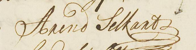 20 april 1710: Arend, zoon van Hendrik Casper Selkoert en Aafjen Vlamings. Getuigen: Willem van Kerkhem en Eva Tholingx