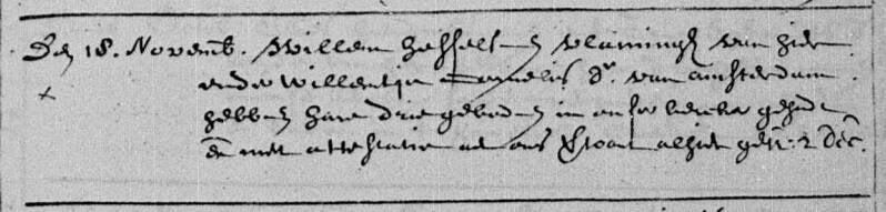 Daarnaast kunnen we uit alles opmaken dat Willem goed geboerd heeft tijdens zijn loopbaan, maar in het Kohier van de 200ste penning uit 1674 staat hij niet vermeld als belastingbetaler in de hoofdstad. Terwijl iedereen met een bepaald vermogen aan deze extra belasting moest meedoen (2).